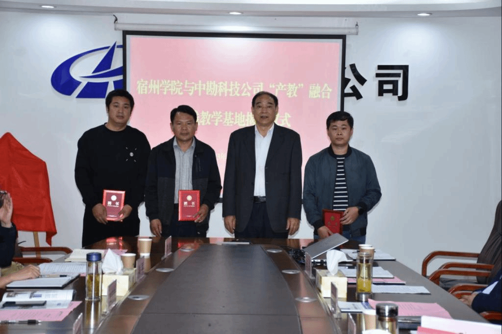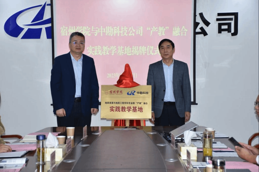 10月27日,我院与中勘资源勘探科技股份有限公司(以下简称中勘科技公司)“产教”融合实践教学基地揭牌仪式在中勘科技行政楼会议室举行。安徽淮海实业发展集团有限公司党委委员、副总经理翟建廷,中勘科技公司党委书记、董事长王金波,党委副书记、纪委书记、工会主席苗瑞丰,总工程师李泉,副总经理、董事会秘书张宇等中勘科技公司相关负责人员,大赢家体育党委副书记、院长李福华,院学术委员会主任桂和荣、资源与土木工程学院院长陈松一行出席揭牌仪式。