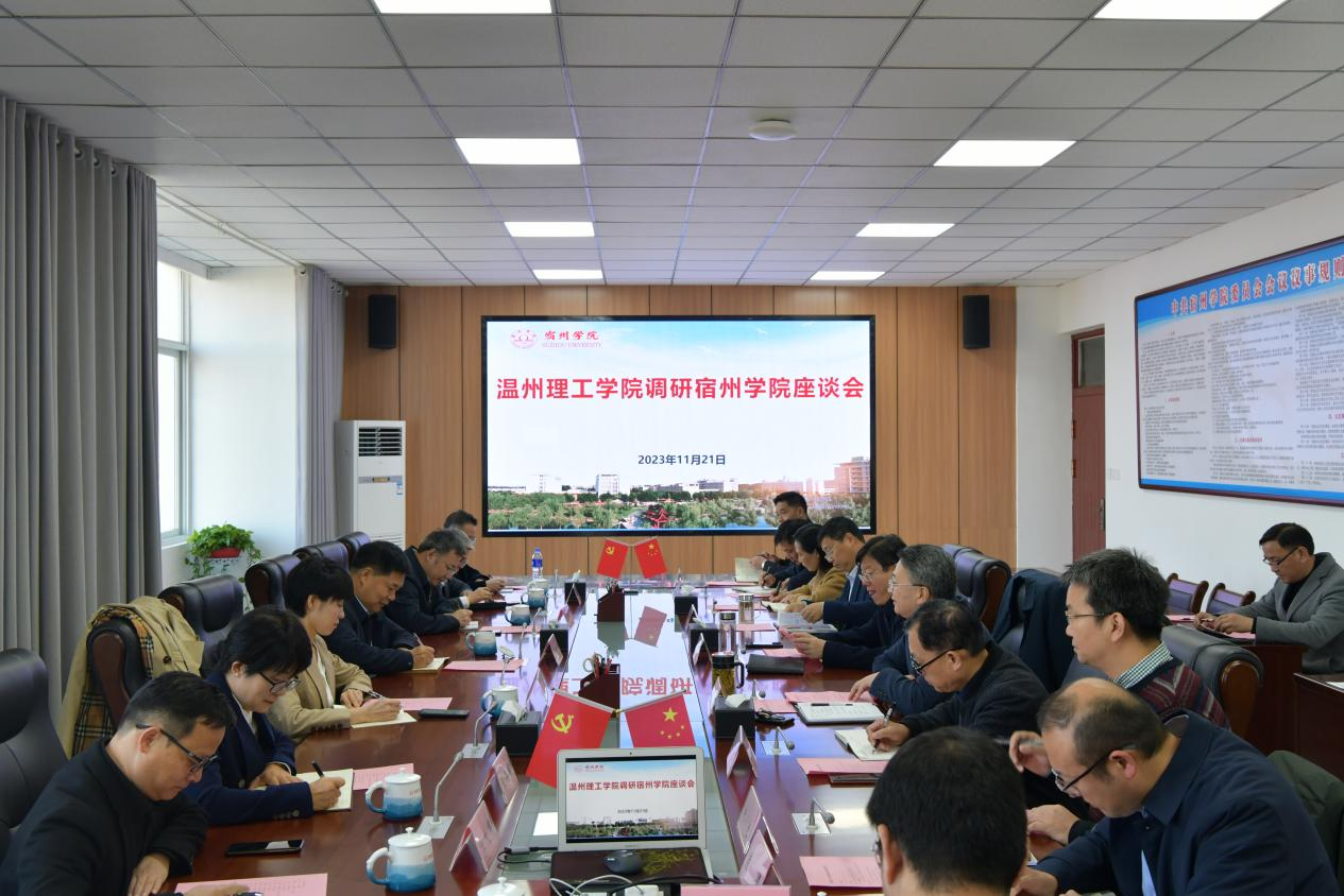11月21日,温州理工学院一行来我院调研交流。两校调研座谈会在逸夫楼504会议室召开。温州理工学院校长、党委副书记周文龙,副校长、党委委员吴向鹏,党委委员、科研处处长王媛媛,教务处处长连新泽、国际交流与合作处(港澳台事务办公室)副处长王奶妮、校地合作处副处长(主持工作)朱斌、创新创业学院副院长王大将和相关科室人员,我院党委书记李红,党委副书记、院长李福华,党委副书记王俊出席座谈会,办公室、教务处(创新创业学院)、科研处、团委、国际交流与合作处(港澳台事务办公室)、招生就业处主要负责人参加座谈会。会议由李福华主持。