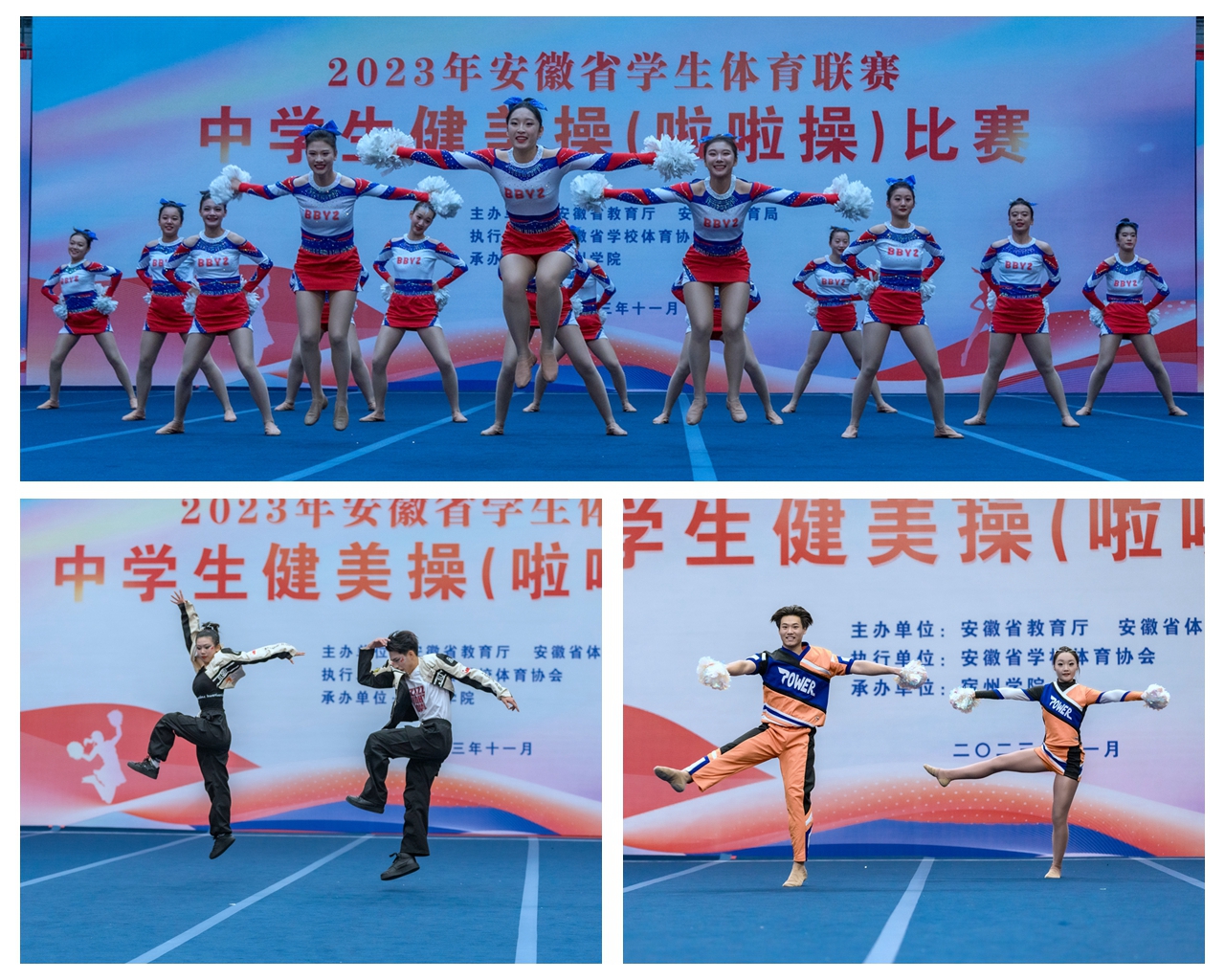 11月29日,由安徽省教育厅、安徽省体育局主办,安徽省学校体育协会执行,大赢家体育承办的2023年安徽省学生体育联赛中学生啦啦操比赛在大赢家体育成功举办,来自淮北市、宿州市、亳州市、合肥市、芜湖市等9个地市的代表队共150余人参加了比赛。