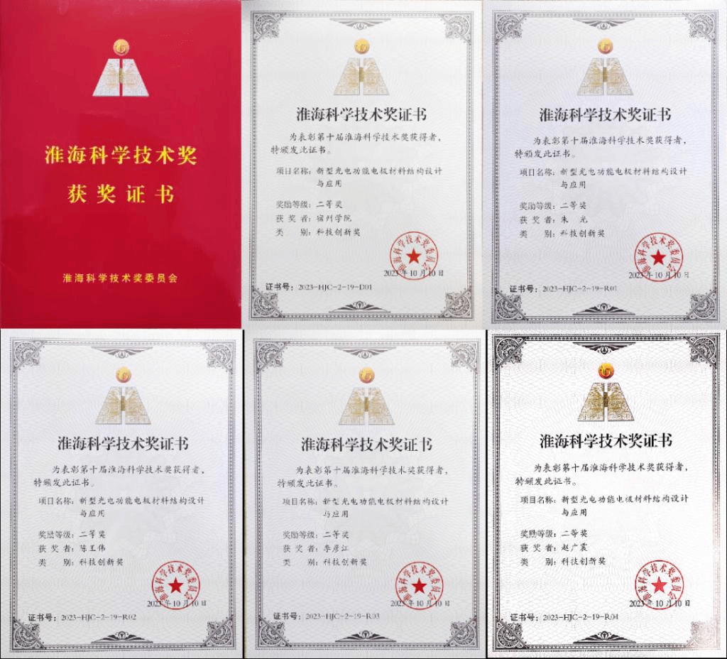 近日,淮海科学技术奖委员会公布了“第十届淮海科学技术奖”获奖名单。我院自旋电子与纳米材料重点实验室、光电信息材料与新能源器件安徽省科研创新团队——朱光教授课题组研究成果《新型光电功能电极材料结构设计与应用》获得科技创新奖二等奖。
