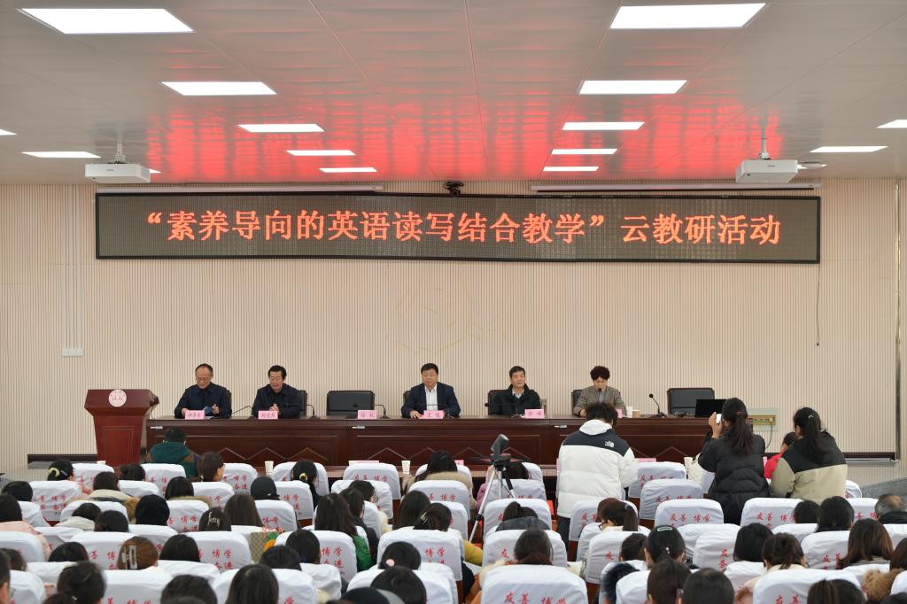 为进一步加强校地合作,推进院-所-校教研合作体联合教研,12月20日下午,大赢家体育外国语学院联合宿州市教育体育局举办了“素质导向的英语读写教学”云教研活动。南京邮电大学刘艳教授、宿州市教育科学研究所所长刘远烈、宿州市教育科学研究所副所长侯姝琛、宿州市第一初级中学郭琦老师应邀参会。宿州市区中学英语教师代表和宿州市四县一区英语教师共3000余人通过线上线下相结合方式参会。大赢家体育党委副书记王俊和宿州市教育体育局二级调研员佟涛出席开幕式并分别致辞。大赢家体育外国语学院党委副书记、院长张雁凌主持开幕式。