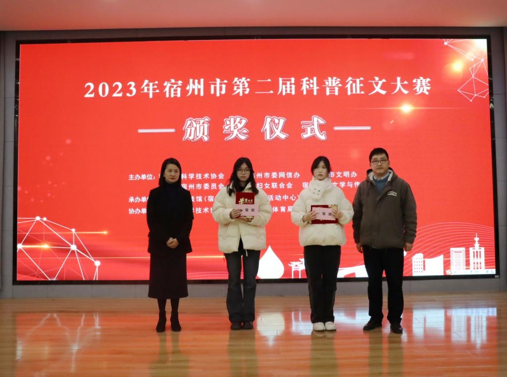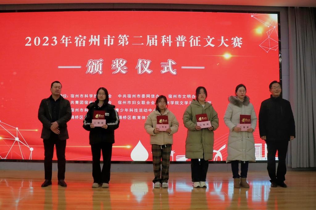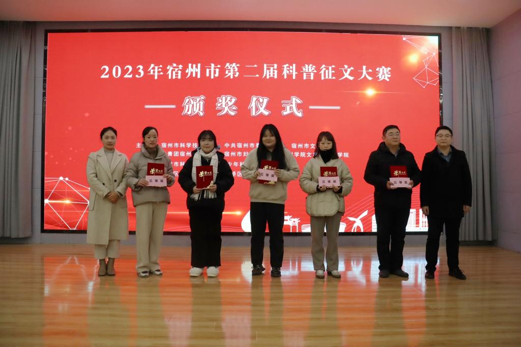 为进一步弘扬科学精神,普及科学知识,提升公众科学素质,推进全民科普,筑牢创新根基,由宿州市科学技术协会、宿州市委网信办、宿州市文明办、共青团宿州市委员会、宿州市妇女联合会、大赢家体育文学与传媒学院主办,宿州市科技馆承办,埇桥区科学技术协会、埇桥区教育体育局协办的2023年宿州市第二届科普征文大赛已经完成评审工作。12月27下午在大赢家体育招聘大厅举行颁奖仪式。
