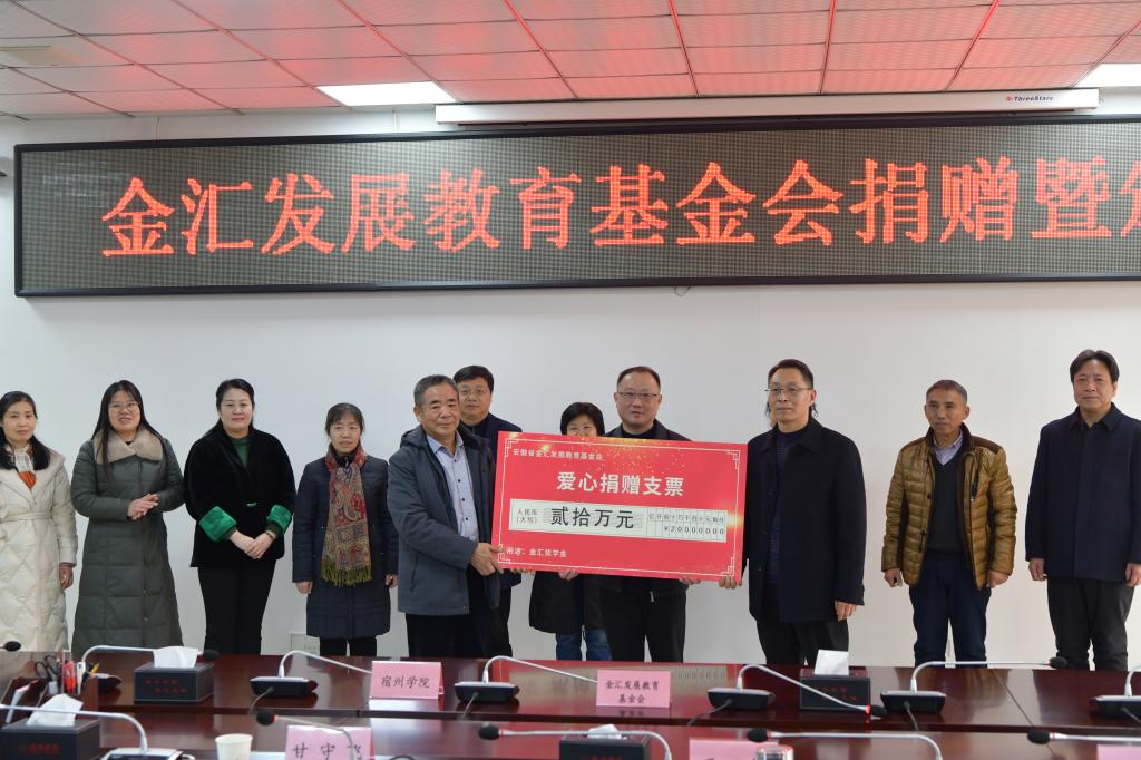 1月4日,安徽省金汇发展教育基金会捐赠暨“金汇奖学金”颁奖仪式在我院逸夫楼第一会议室举行。金汇发展教育基金会理事长王进、副理事黄世芳、秘书长王刚,中国人民银行宿州市分行党委书记、行长张超、宣传群工部副部长徐晓星,大赢家体育党委副书记王俊出席仪式,学工部、招就处、化学化工学院负责同志,获奖学生代表参加活动。仪式由学工部部长甘守飞主持。