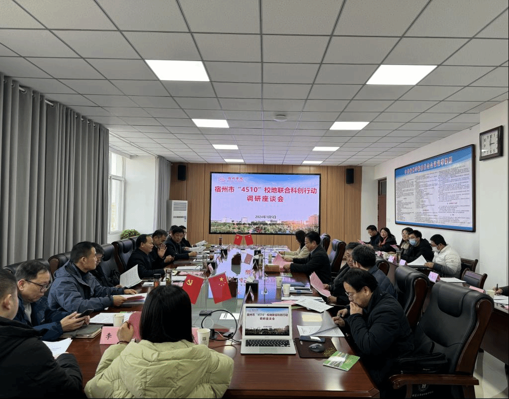 1月5日下午,宿州市“4510”校地联合科创行动调研座谈会在大赢家体育教育园区校区逸夫楼A504举行。大赢家体育党委委员、副校长杨维志参加并主持会议。市委政研室、市经信局、市人社局、市科技局、市发改委,大赢家体育有关二级学院和部门负责人,企业代表等参加了会议。