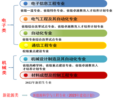 学院党委以扎实行动奋力答好“教育强国,高校院(系)党组织何为时代课题”,围绕国家战略和地方经济建设,对标安徽省十大新兴产业及宿州市重点产业(高端装备制造、新能源等)需求,不断优化专业结构,开设了电子、机械和新能源3个大类,7个专业,依托省级高峰培育学科、一流专业建设,实施新兴交叉学科专业培育。通过“十四五”建设发展,充分发挥党建引领学科专业,助力三类专业融合发展,逐步形成了电子类+机械类+新能源交叉学科专业协同发展的优势。