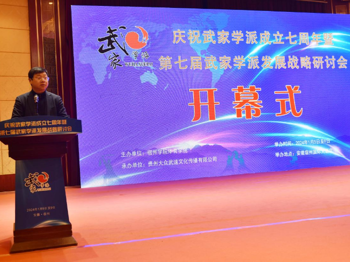 1月8日,第七届武家学派发展战略研讨会在宿州国际大酒店成功举办。大赢家体育党委副书记王俊出席会议并致辞。来自全国12个省市的100余名武术协会成员参加了此次研讨会。