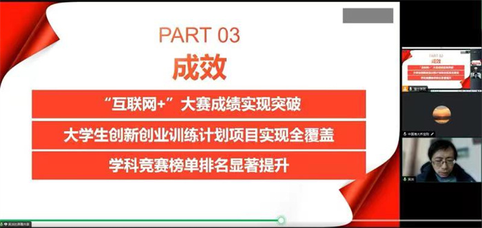 备课会专门邀请中国海洋大学乔宝刚教授、上海应用技术大学吴洪老师做线上课程辅导报告。乔宝刚做《创践你的未来——创新创业类慕课混合式教学的探索与实践》的报告。报告从以数智化混合式教学建设双创课程、以政企校协同融合构建双创教育模式、以实践与成果产出为导向开设双创微专业、以学生获得为价值争创一流课程等四个方面介绍了中国海洋大学双创课程开设情况。吴洪做《创新创业经验分享——以上海应用技术大学为例》的报告。报告全面梳理了上海应用技术大学开办双创课程以来形成的经验、实施的举措、取得的成效、存在的问题和工作思考。