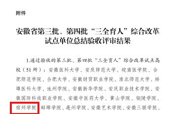 近日,省委教育工委公布了全省第三批、第四批“三全育人”综合改革试点单位总结验收评审结果。经各校(院系)上报总结材料、专家会评、评委会审议等程序,我院顺利通过全省“三全育人”综合改革试点高校总结验收,商学院、机械与电子工程学院通过试点院系总结验收。