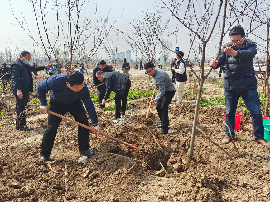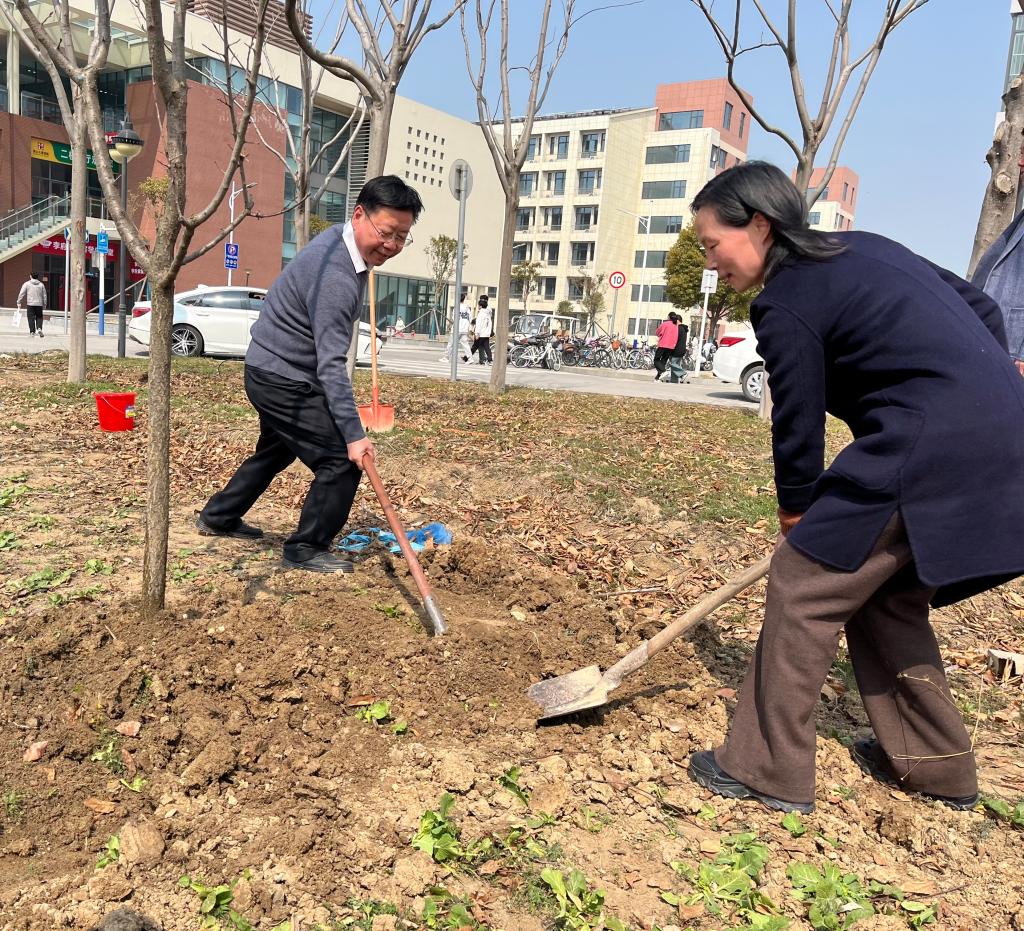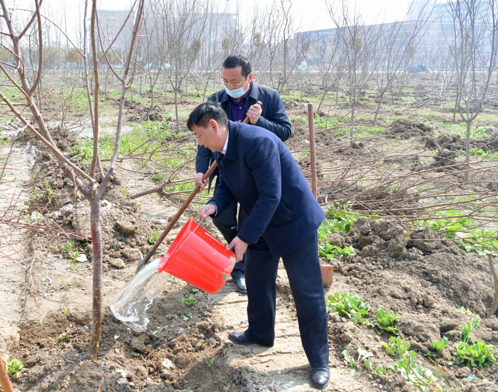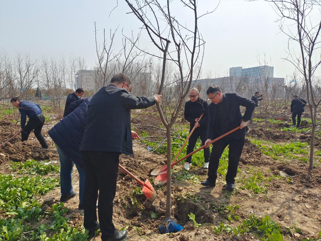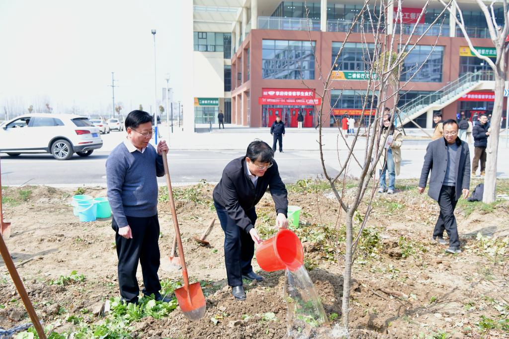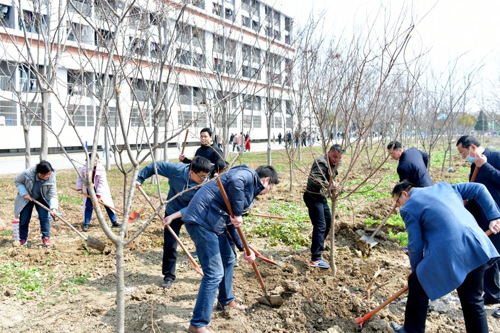 3月11日,在全国第46个植树节来临之际,我院开展“同行共栽希望树,同心共育接班人”为主题的植绿、护绿、爱绿校园植树活动。院领导李红、王俊、杨维志、邢存海、王红艳、陈得宝与近百名教职工一起参加了植树活动。