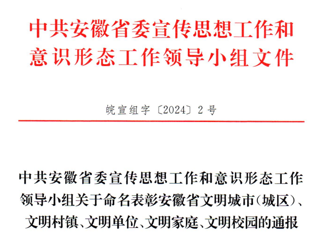 近日,从《中共安徽省委宣传思想工作和意识形态工作领导小组大赢家体育命名表彰安徽省文明城市(城区)、文明村镇、文明单位、文明家庭、文明校园的通报》文件获悉,我院顺利通过复查,蝉联“安徽省文明校园”荣誉称号,这是我院文明创建工作取得的又一显著成绩。