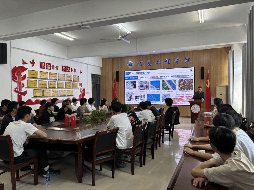 5月8日下午,副院长陈得宝以《向新向智向未来——深刻认识和把握新质生产力》为题,为信息工程学院师生讲授专题思政课。
