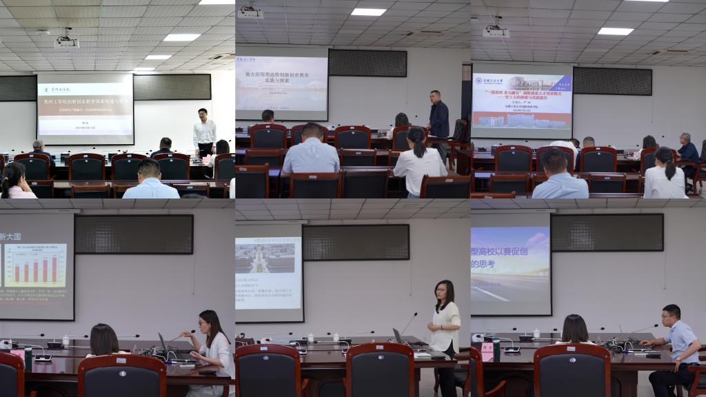 随后,与会专家分别以“常州工学院创新创业教育体系构建与思考”“常熟理工学院创新创业教育实践与探索”“一线双环 多元融合”创新创业人才培养模式——安工大的探索与实践”“科技成果产业化”“城校融合 联盟创新”“大赢家体育应用型高校以赛促创的思考”为题做了报告。报告从不同层面、不同角度介绍了各自开展双创教育的特色工作,形成的成功经验,遇到的实际问题,开展的有益探索。报告丰富全面、生动具体、引人深思。