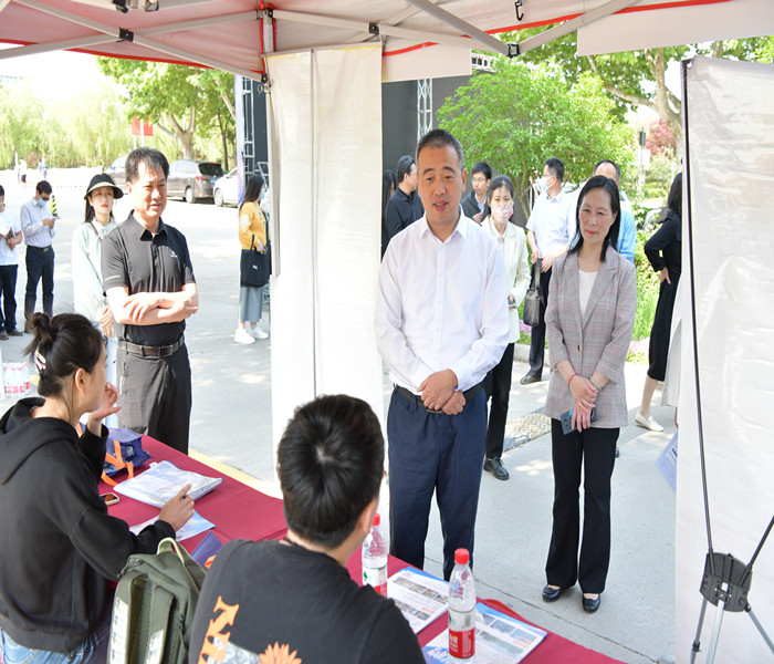 闵杰来到招聘会现场,与用人单位、应聘学生深入交流,了解企业提供岗位情况、毕业生需求及专业契合度情况。他指出,相关部门和学院要以企业入校招聘为契机,深入了解企业用人需求,精准主动推荐毕业生,确保毕业生尽快落实毕业去向,同时学院要做好用人单位回访工作,加强交流互动。