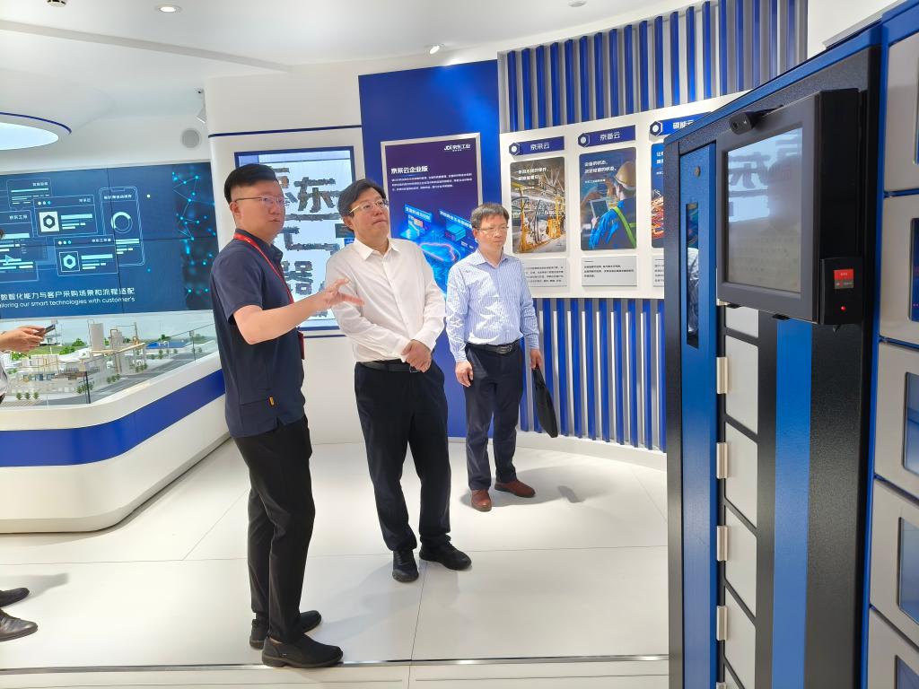 后勤与基建管理处处长杨文艺,商学院党委副书记、院长刘红军等陪同考察,京东物流校企合作部总经理石晓崧、京东京彩校企合作部总经理蒋继禹、综合事务部经理刘田等参加考察座谈会。