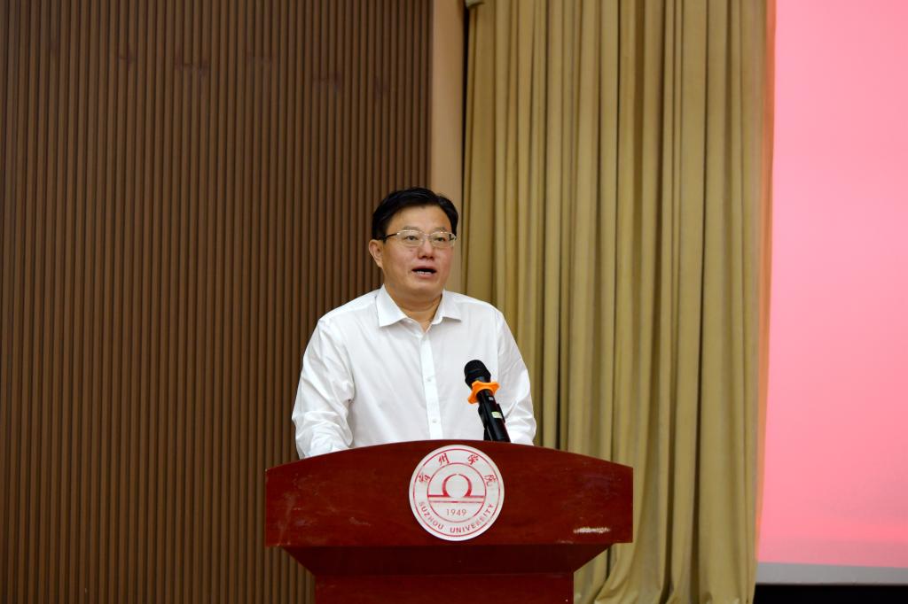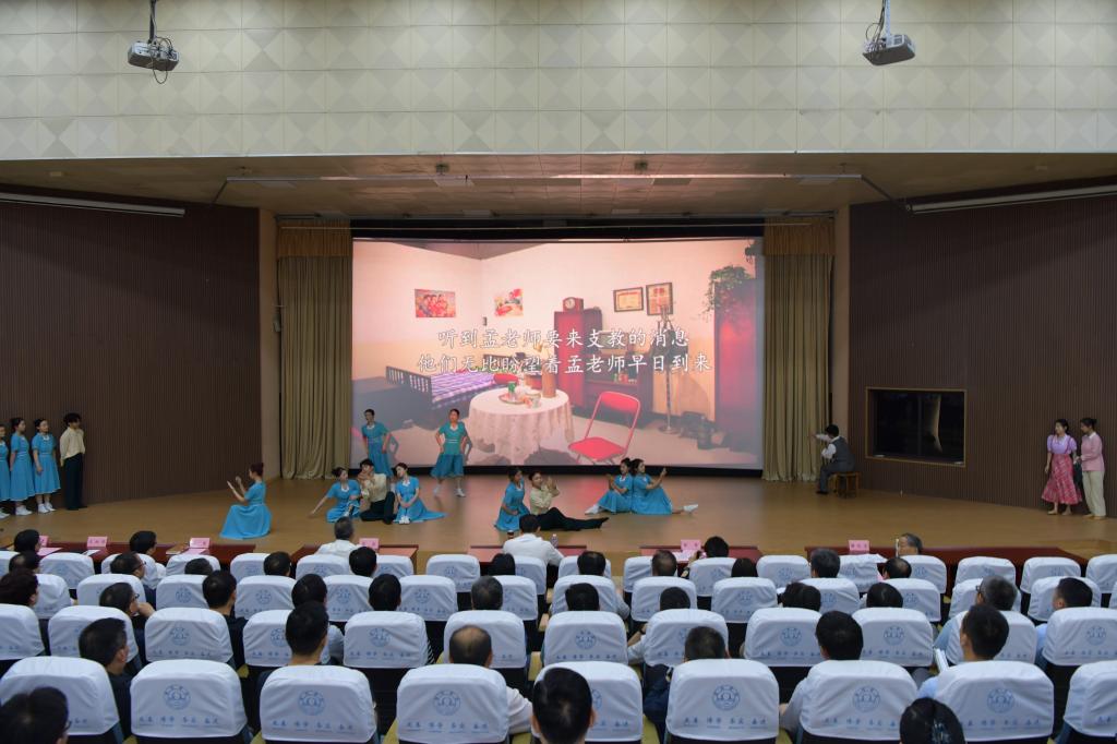 会前,与会人员集中观看了我校原创大型泗州戏《当代楷模——孟二冬》选段和原创舞蹈《不朽的师魂》。该戏剧和舞蹈生动塑造了一位信仰坚定、不忘初心的共产党人形象,展现了孟二冬教授自强不息的职业道德和高尚的道德情操。