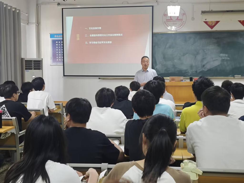 近日,院党委副书记、院长闵杰走进思政课教学一线,以《思想之光照亮前行之路——学习领会习近平文化思想》为题,分别为外国语学院、资源与土木工程学院学生讲授专题思政课。