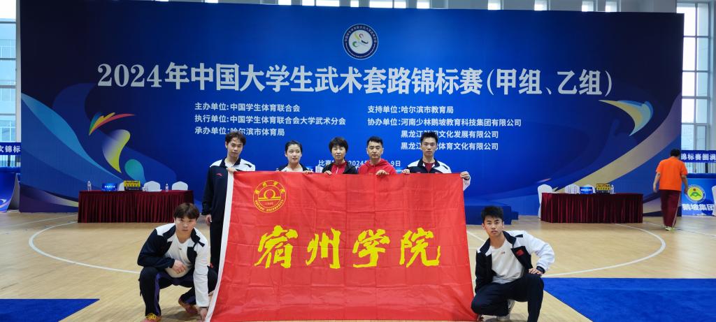 6月2日至9日,中国大学生武术套路锦标赛在哈尔滨华德学院体育馆举行。本次比赛由中国学生体育联合会主办,是全国高校武术比赛中级别最高、规模最大、影响力最广的赛事,吸引了中国人民公安大学、浙江大学、华东师范大学等全国260余所高校的1600余名运动员参与本次竞赛。我校武术代表队5名运动员参加了此次锦标赛在指导老师刘明龙、付荣老师的悉心指导下,斩获一金一银三铜的佳绩。