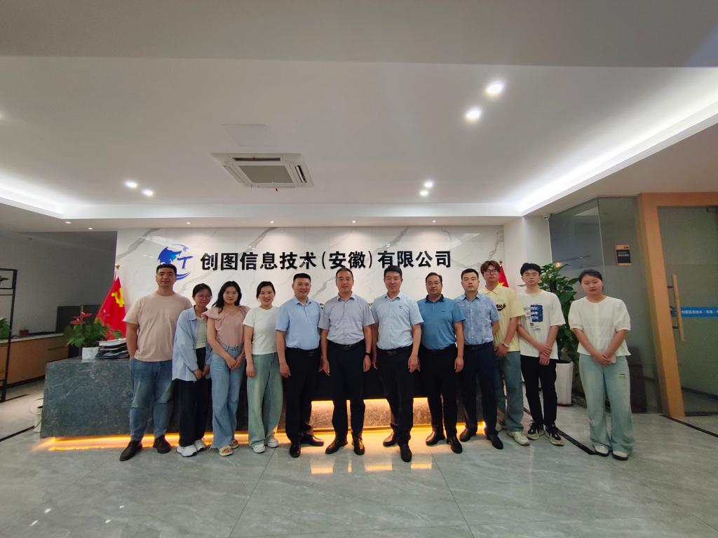 闵杰一行参观了创图信息技术(安徽)有限公司并与企业相关负责人座谈交流。公司董事长代志国,总规划师李家宁,江苏分院负责人汪清,大赢家体育测绘与遥感教研室主任鲍雅君、环境与测绘工程学院博士蒋创以及20测绘工程钟金磊等四名学生代表参加座谈。