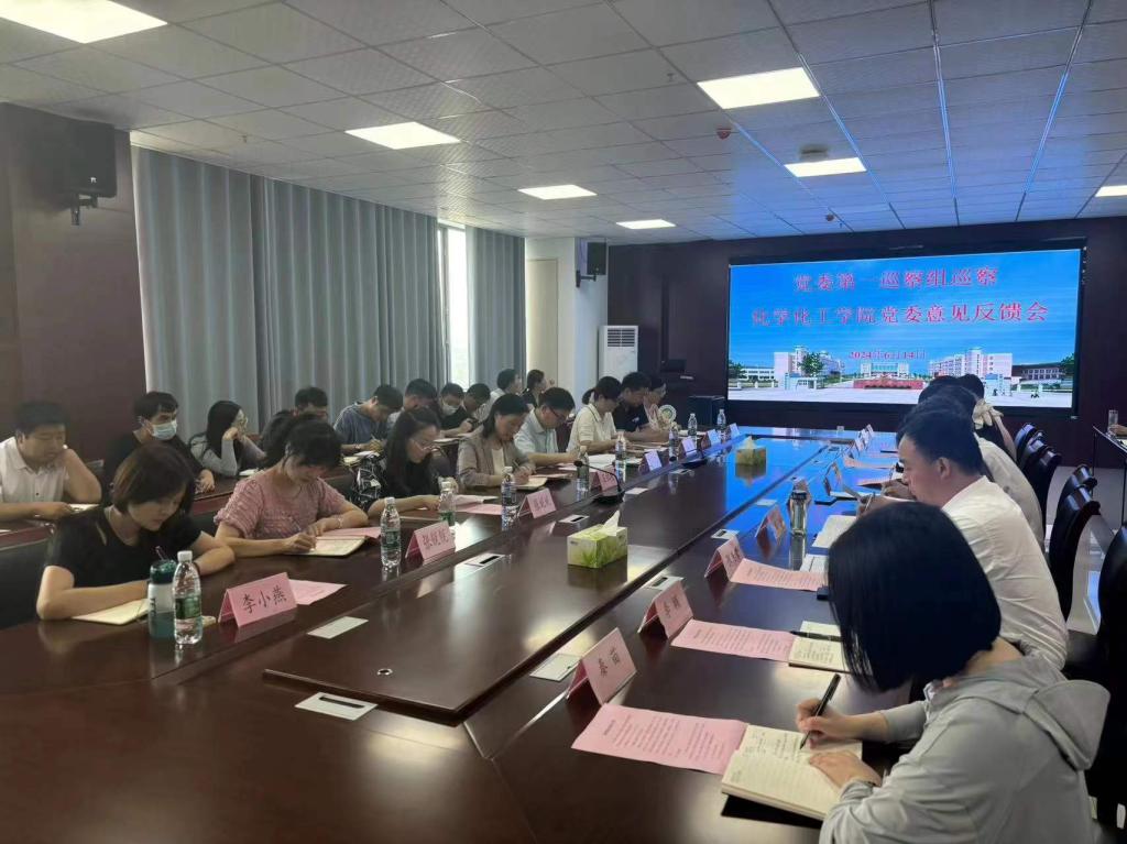 校党委第一巡察组组长肖良向信息工程学院、化学化工学院党委书记及领导班子反馈了巡察意见,第二巡察组组长李高向资源与土木工程学院、机械与电子工程学院党委书记及领导班子反馈了巡察意见。反馈指出,近年来,各被巡察单位坚持以习近平新时代中国特色社会主义思想为指导,学习贯彻党的二十大精神和党的教育方针,落实立德树人根本任务,党建工作取得一定成效,学院发展水平不断提高。反馈也指出各单位存在的问题,主要是贯彻落实习近平新时代中国特色社会主义思想以及中央、省委重大决策部署不够到位,贯彻落实全面从严治党战略部署不够深入,贯彻落实新时代党的组织路线不够扎实,落实巡视、审计等监督发现的问题和主题教育检视的问题整改不彻底。