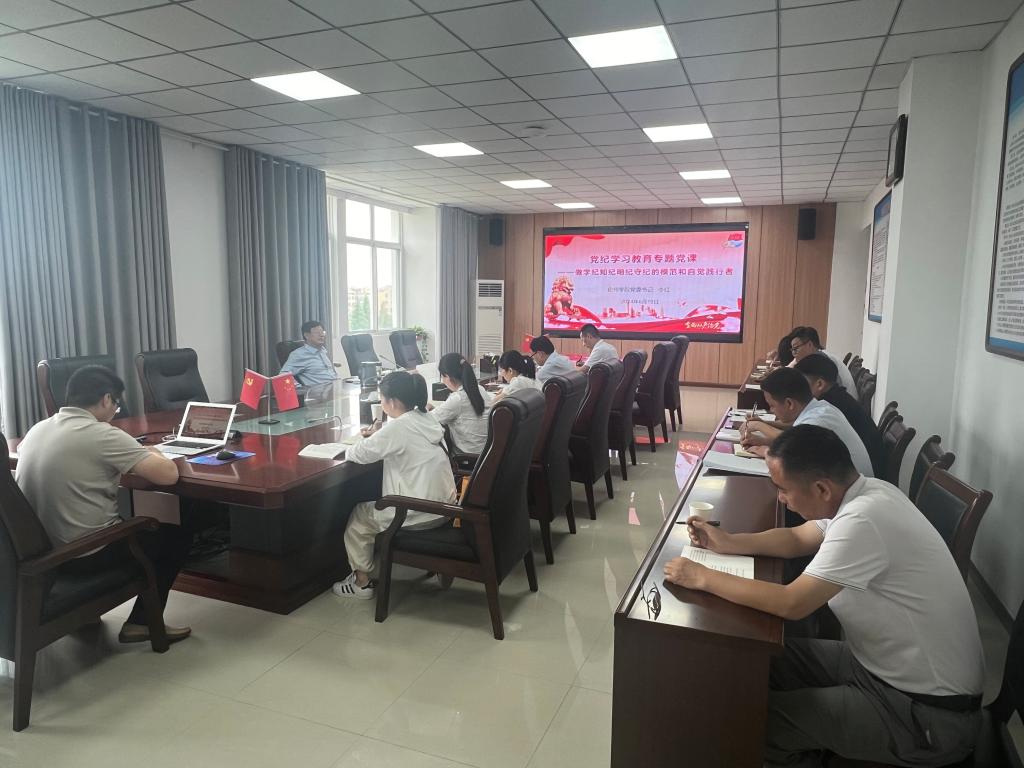 6月19日上午,校党委书记李红在逸夫楼A506会议室给办公室党支部全体党员讲授党纪学习教育专题党课,报告由校党委常委、办公室主任岳尧主持。