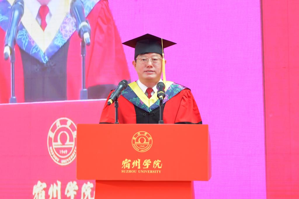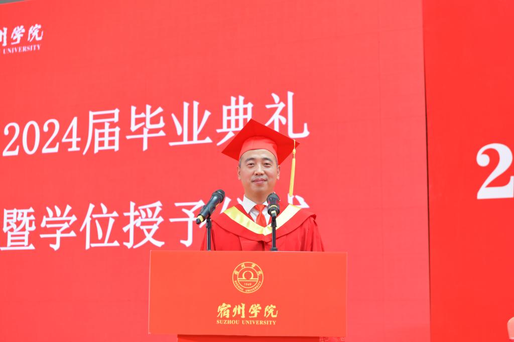 仪式上,校党委书记李红代表学院党委、行政向圆满完成学业的全体毕业生表示最真诚的祝贺,向辛苦养育他们的父母,辛勤培养他们的老师表示衷心的感谢,并给毕业生送上了临别的叮嘱。希望同学们牢记“国之大者”,不负时代、不负韶华,树立“功成不必在我,功成必定有我”的信念,自觉将“小我”融入“大我”,将个人理想追求融入国家和民族的事业中去,不啻微芒、造炬成阳。希望同学们勇于砥砺奋斗,锤炼本领、增长才干,在困难中磨练坚强意志,练就过硬本领,迎难而上、奋发有为。希望同学们永葆赤诚之心,向上而生,向善而行,常怀感恩之心,学会善待父母家庭、善待爱人朋友、善待他人、善待自然万物,以“嘉言懿行”弘扬社会主义核心价值观。
