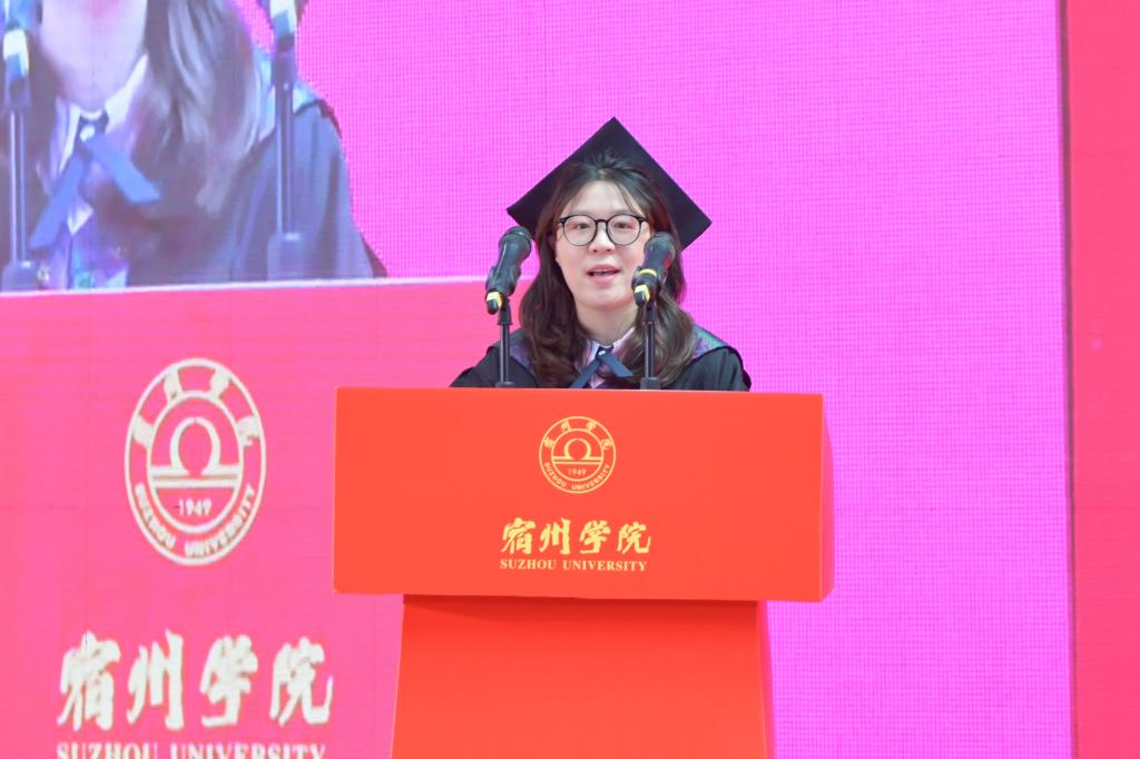 2024届毕业生代表、商学院2020级会计学1班陈玉原同学深情回忆了大学生活的点点滴滴,代表全体毕业生感恩母校的培养。教师代表、化学化工学院教授、硕士生导师张克营为毕业生送上了衷心的祝福,希望毕业生坚定理想信念,永葆勤学之心、从容之心,争做有担当、有作为、敢于直面挑战的新时代青年。