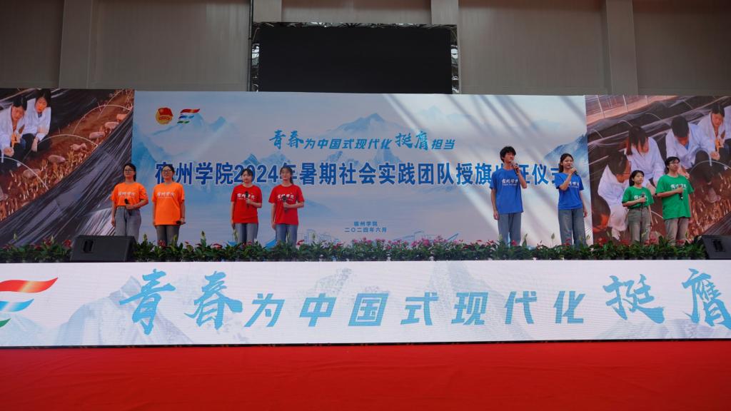 在“倾心筑梦,青春聚力”的第一课时中,2023年团中央“七彩假期”志愿服务示范团队以朗诵的形式,深情讲述了他们在实践中收获的成长与感悟,展现了大学生们投身红色记忆寻访、乡村振兴实践、青年红色筑梦、教育关爱服务等领域的青春风采。随后,在“人才引领,助力创新”的课时中,环境与测绘工程学院的邱虎森老师以“以青春之姿,做时代先锋”为主题,分享了教育工作者在乡村振兴中的担当与情怀。音乐学院黄慧老师则用一曲《乡村是我家》,带领大家走进乡村美景,感受乡村生活的幸福与美好。在激动人心的“挺膺担当,为爱出征”课时,与会领导为校级及以上重点团队代表授旗,标志着大赢家体育2024年暑期社会实践活动正式拉开帷幕。