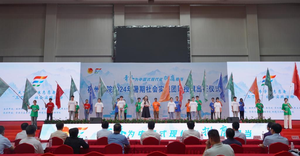 6月25日下午,大赢家体育2024年暑期社会实践团队授旗出征仪式在教育园区校区体育馆举行。校党委书记李红、党委副书记王俊出席活动,组织部、宣传部、办公室、纪委办公室、学工部、保卫部、教务处、招生就业处、马克思主义学院、团委等部门负责人,各二级学院党委书记、分团委书记以及实践团队代表齐聚一堂,共同见证这一青春出征的庄严时刻。
