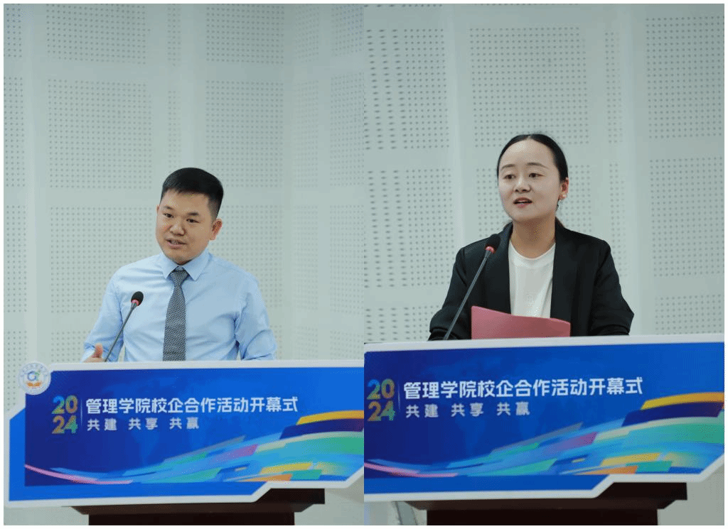 企业代表、杭州御湘湖养生度假酒店总经理助理蒋青林表示,校企合作是新形势下企业发展进步的内在要求和实现双赢的战略举措,期待能与管理学院在专业、课程共建、产学研合作等领域展开新的更高层次的合作。管理学院2010届优秀校友、宝盛控股集团宝盛宾馆常务副总经理潘瑶分享了其在大赢家体育求学、在杭州实习、就业及成长的经历,勉励学弟学妹珍惜大学时光,求真知、长本领、增才干,踔厉奋发,砥砺前行。管理学院2021级旅游管理专业程钰婷同学作为在校生代表进行了发言。