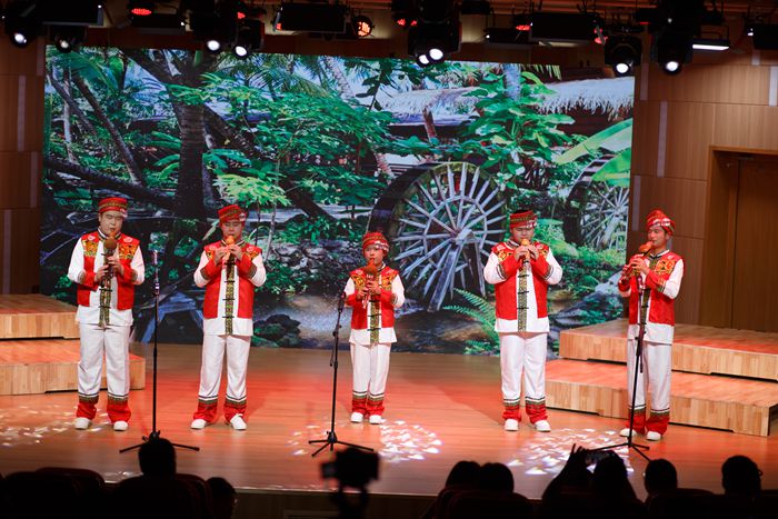 音乐会在朗诵《信念永恒》中拉开序幕,《唱支山歌给党听》《国家》等合唱曲目,《我爱这土地》《菩萨蛮黄鹤楼》等独唱歌曲,器乐重奏《我和我的祖国》,抒发了师生对党和国家的热爱。戏曲独唱《咏梅》颂扬了共产党员在逆境中不屈不挠的精神风貌。器乐重奏《江山美》描绘了一幅幅山河壮丽、国泰民安的美好画卷。《灿烂的阳光下》勾勒出人民群众在党的引领下,迈向幸福生活的美好愿景。《想要的一定实现》激励着每一个人勇敢追梦、不懈奋斗。朗诵《英雄》与《红船的方向》则深情回顾了党的光辉历程,致敬那些为国家和人民英勇献身的先辈,教育引导师生传承红色基因、赓续红色血脉。宿州市特殊教育中心的五位盲童孩子带来的葫芦丝重奏《海岛苗家三月三》用温暖与希望感染了每一位观众。