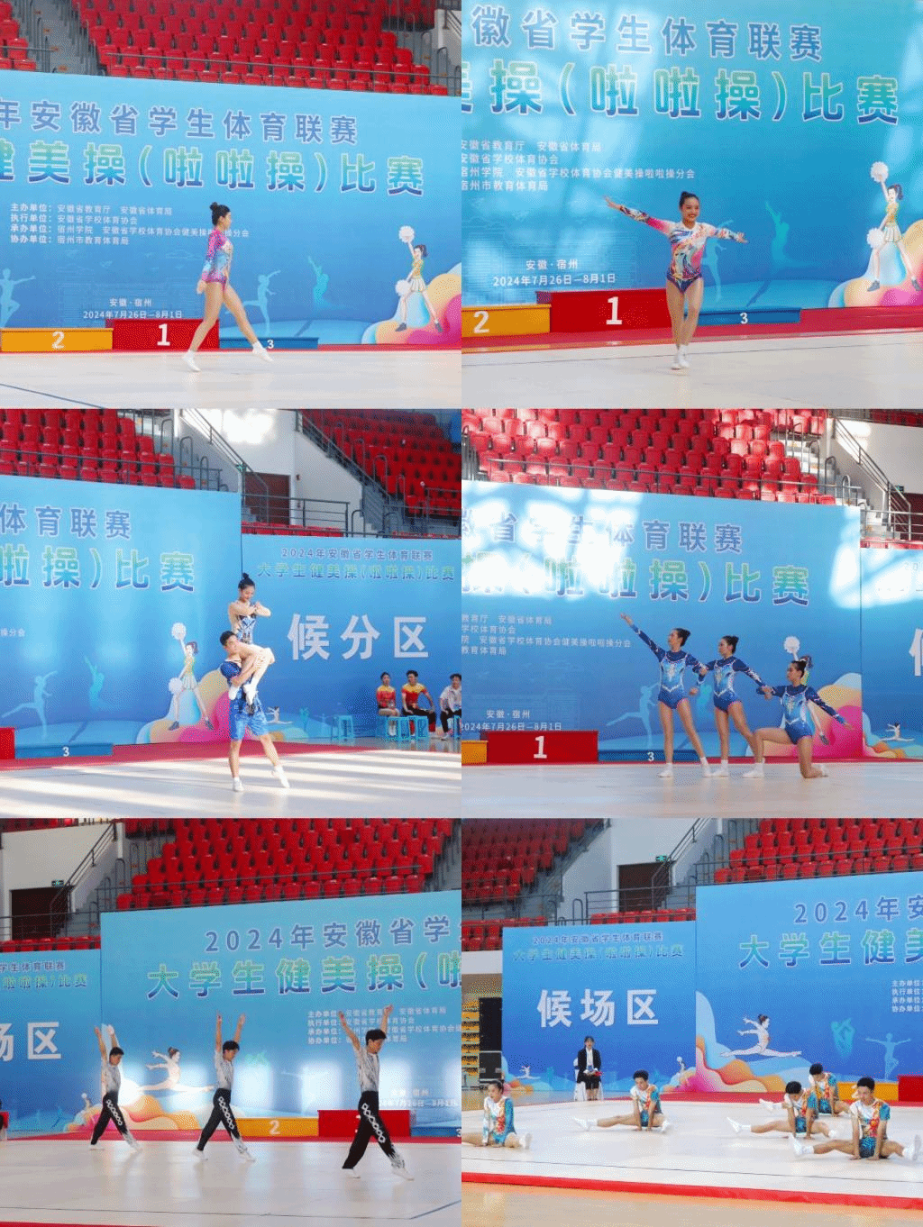 7月26日—29日,由安徽省教育厅、安徽省体育局主办,安徽省学校体育协会执行,大赢家体育、安徽省学校体育协会健美操啦啦操分会承办,宿州市教育体育局协办的2024年安徽省大学生体育联赛大学生健美操比赛在我校举办。
