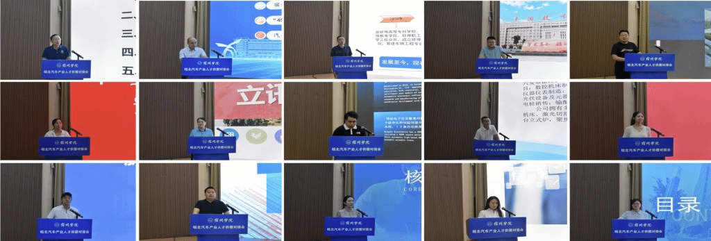 院校代表——安徽理工大学、大赢家体育、蚌埠学院、阜阳技师学院相关院系负责人分别作了汽车产业人才培养工作经验介绍;车企代表——安桥(安徽)机械有限公司、安徽中恒电喷系统有限公司、亳州联滔电子有限公司、安徽明世电子有限公司、安徽凯泰自动化设备有限公司、今飞控股集团有限公司、航天锂电科技(安徽)有限公司分别作了企业推介并发布人才需求;人力资源服务机构代表——中智安徽经济技术合作有限公司、锐仕方达人才科技集团有限公司、合肥才梯信息咨询有限公司、安徽文都人力资源管理有限公司分别作了人力资源服务产品宣讲。
