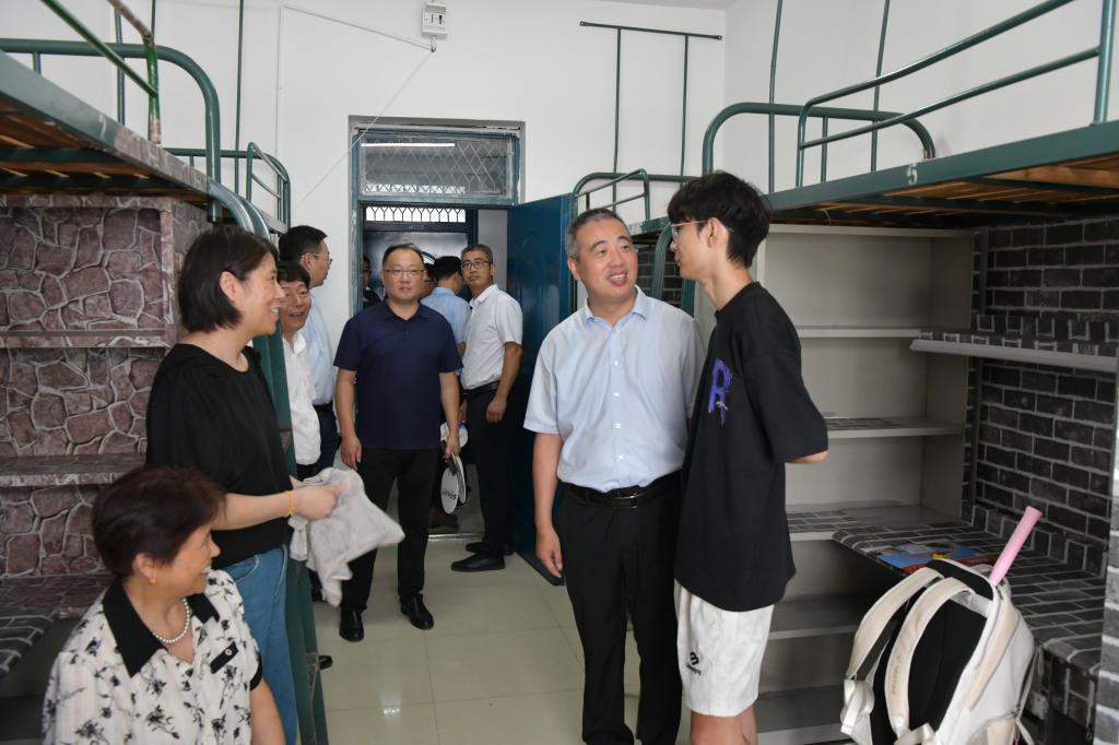 “你们什么时候到校的?”“有没有什么困难需要学校帮助解决?”闵杰走进食堂与新生和家长话家常、聊感受,关心学生在学校的日常生活和饮食起居,并详细询问了卫生管理、菜品设置以及食品安全保障措施,强调要严把食品安全关,确保学生吃得放心、吃得满意。