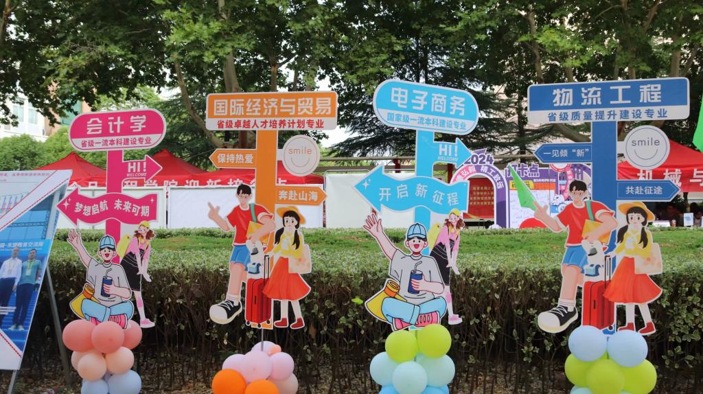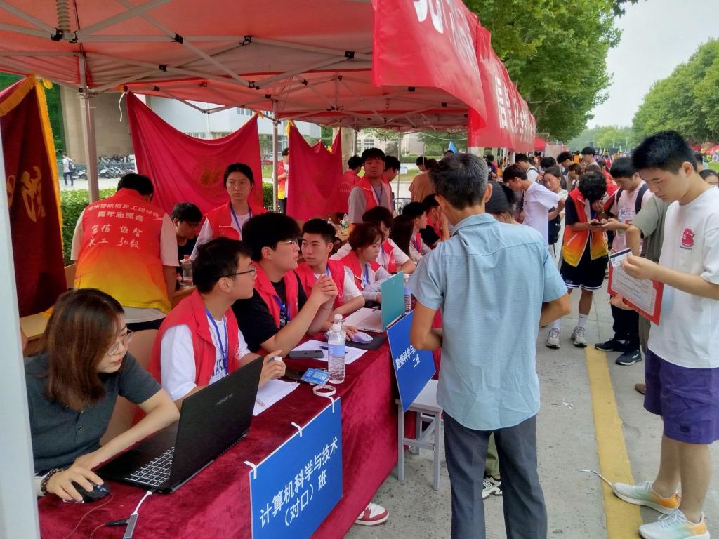 为热情周到做好迎新工作,学校提前一周召开了协调会,相关部门和二级学院提前一天就布置好了迎新现场,盛情迎接来自四面八方的新生。迎新现场,学生处、国际交流与合作处、财务处、教务处、招生就业处等部门设置了专门展台,宣传“绿色通道”、收费政策、国际合作交流项目等。14个二级学院纷纷亮出自己的“绝活”,信息工程学院的迎新机器人挥舞着手臂吸引了许多目光;生物与食品工程学院的定制版迎新产品融合了迎新和消暑作用,受到了新生的欢迎;文学与传媒学院将“宿愿”文创周边作为小礼品送给新生和家长,受到一致好评;商学院定制的新生姓名打卡墙,引得新生纷纷驻足打卡拍照留念;音乐学院则在迎新现场表演了舞蹈《我和我的祖国》……