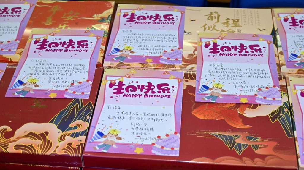 8日当天,学校还专门为14位新生举办了生日会,送上了学校对他们的祝福。“真的没有想到学校这么用心,为我们新生准备了这么多,让我觉得很温馨、很快乐。”生物技术2班的牛博宇表达了自己对生日会的感受。