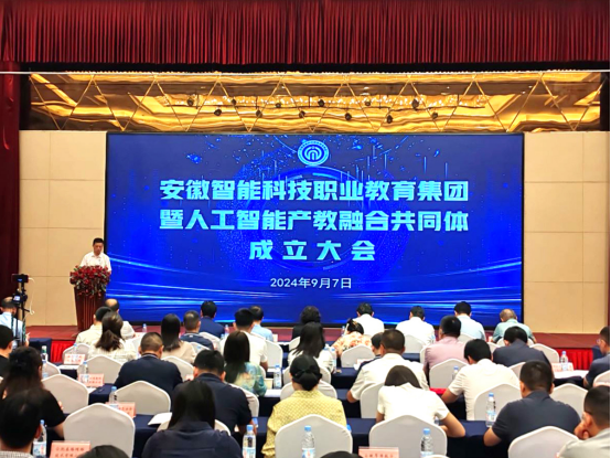 9月7日,安徽智能科技职教集团暨人工智能产教融合共同体成立大会在合肥召开,安徽省教育厅二级巡视员周晓芹,安徽省科技厅二级巡视员王孟忠,校党委书记李红,党委常委、副校长杨维志,安徽中澳科技职业学院党委书记杨恒宇,党委副书记、院长王德润等出席会议。
