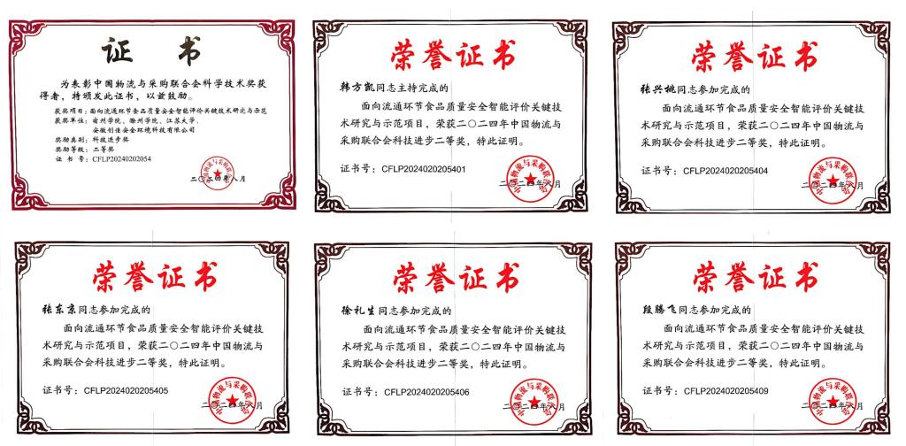 近日,2024年度中国物流与采购联合会科学技术奖颁奖典礼在合肥举行。我校教师韩方凯、张兴桃、张东京、徐礼生、段腾飞等申报的《面向流通环节食品质量安全智能评价关键技术研究与示范》荣获科技进步二等奖。