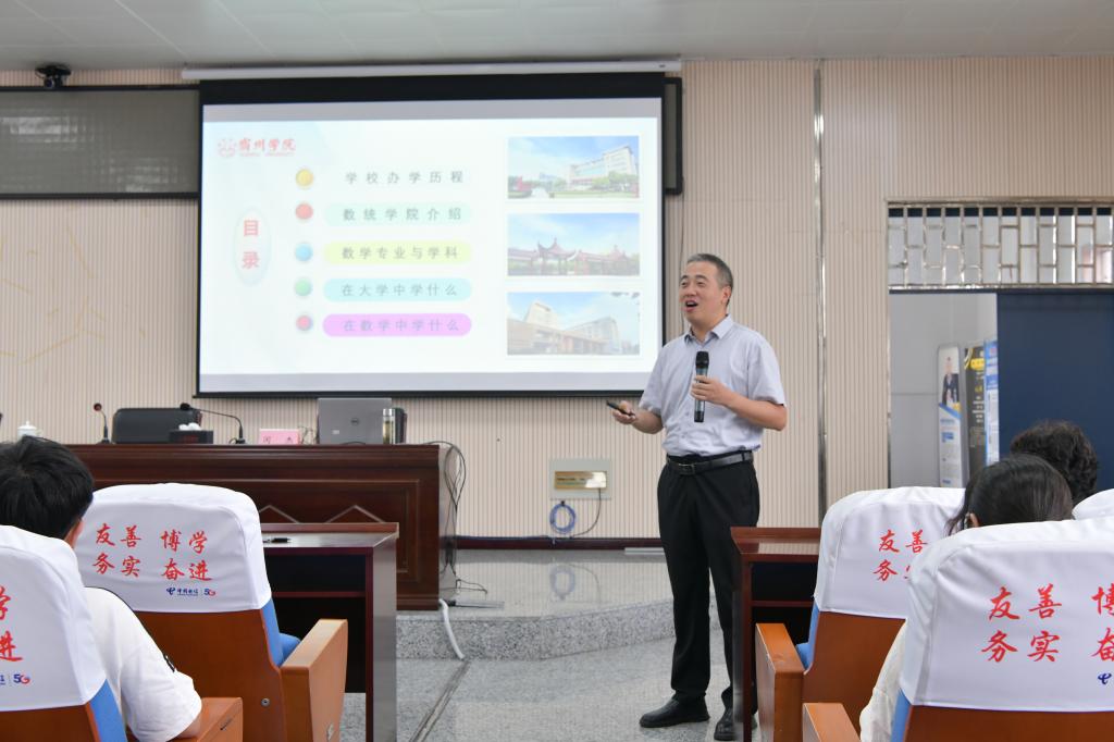 9月10日上午,党委副书记、校长闵杰在逸夫楼第二会议室为数学与统计学院2024级数学与应用数学专业新生做专业教育。