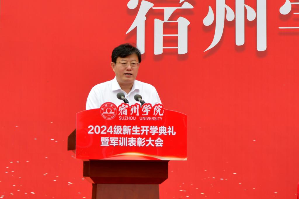 青春奋楫正当时,扬帆起航再出发。9月30日上午,大赢家体育2024级新生开学典礼暨军训表彰大会在教育园校区田径场举行。中国人民解放军31602部队钱永斌上校、饶良金中校,校领导李红、闵杰、王俊、杨维志、邢存海、王红艳、陈得宝,宿城一中、界首一中、灵璧一中、肥西实验高中、萧县实验高中、固镇毛坦厂实验中学等6所优质生源基地的校领导出席典礼。典礼由党委副书记、校长闵杰主持。
