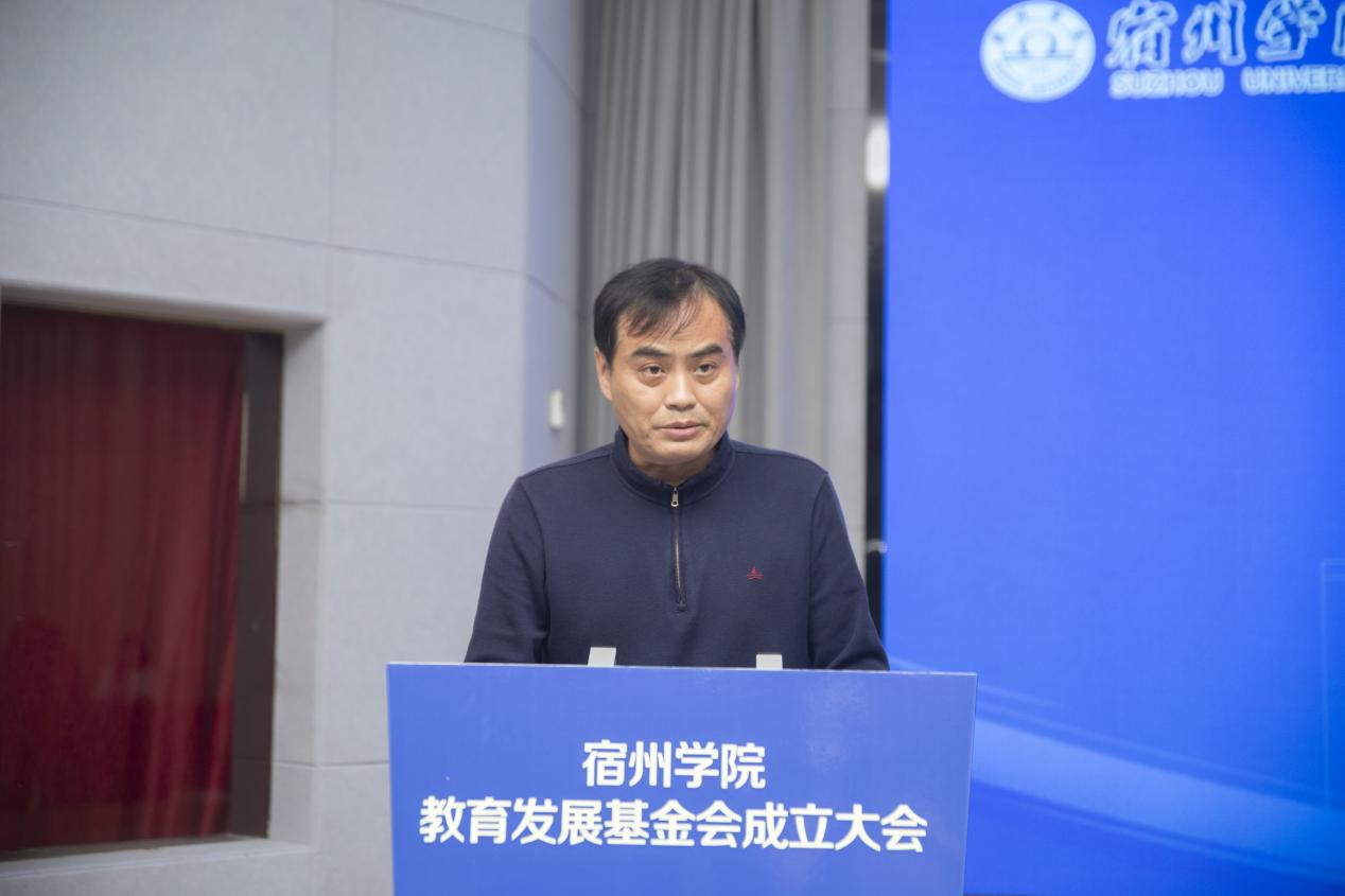 理事长李亮代表基金会第一届理事会作表态发言。表示将在安徽省民政厅、教育厅的指导下,在学校党委的领导下,团结带领理事会全体成员,扎实工作,积极进取,为服务学校发展、服务安徽教育事业、经济社会发展做出积极贡献。