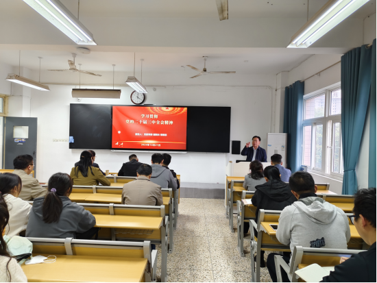 10月21日下午,党委常委、副校长杨维志到文学与传媒学院宣讲党的二十届三中全会精神,分管部门副处级以上干部,文学与传媒学院党政班子成员、师生代表参加了宣讲会。宣讲会由文学与传媒学院党委副书记、院长李月云主持。
