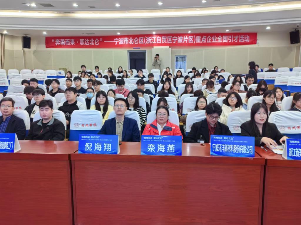 11月1日,学校联合宁波市北仑区人力资源和社会保障局、宁波市北仑区人才综合服务中心举办“奔甬而来 职达北仑”2025届毕业生专场招聘会暨访企拓岗对接交流会。党委常委、副校长王红艳,宁波市北仑区人才综合服务中心主任倪海翔、副主任栾海燕出席对接交流会,机电学院、化学化工学院、商学院、信息工程学院、数统学院、管理学院、外国语学院等7个学院负责人以及就业与校地合作处工作人员与北仑区五家优质企业代表参加会议。