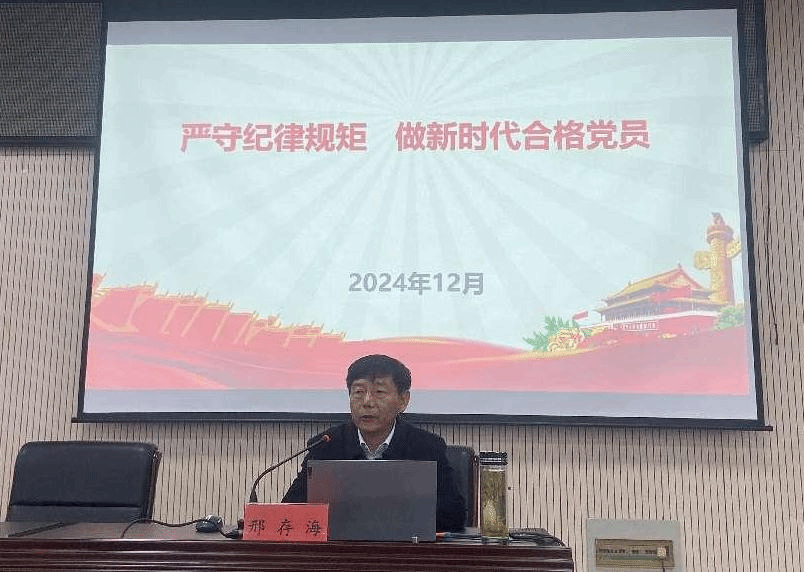 12月4日下午,校党委常委、纪委书记、监察专员邢存海在逸夫楼第二会议室为学生党员讲授题为《严守纪律规矩 做新时代合格党员》的专题党课。党课辅导报告会由校党委常委、党委组织部部长张劲松主持。