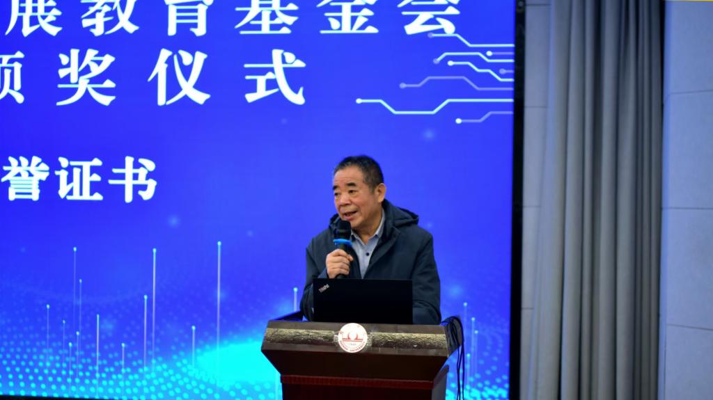 王进介绍了金汇发展教育基金会的基本情况及基金项目申请工作情况,他希望获奖同学,要常怀感恩之心,刻苦学习,将来回馈社会、报效国家,以实际行动回报学校的教育和社会的关爱。