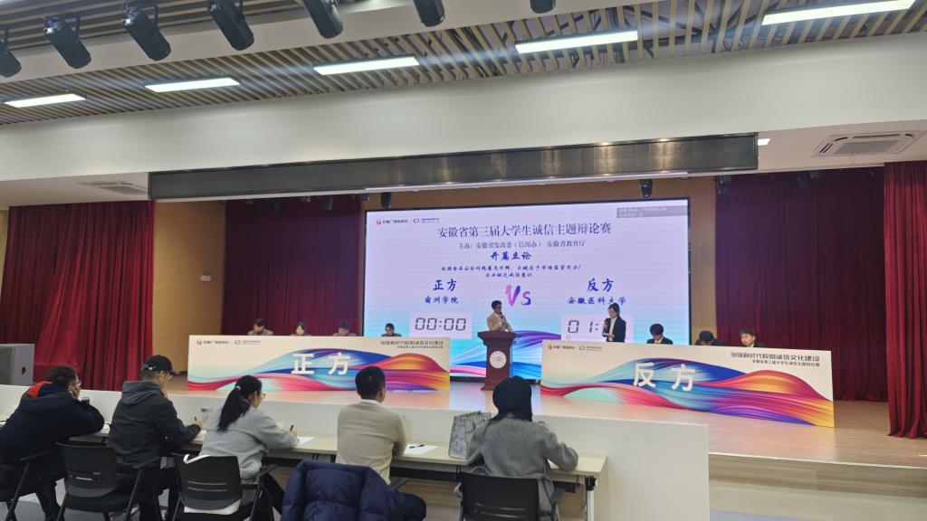 近日,安徽省第三届大学生诚信辩论赛总决赛在合肥师范学院锦绣校区举行,我校大学生辩论队最终从84支队伍中脱颖而出,荣获一等奖。