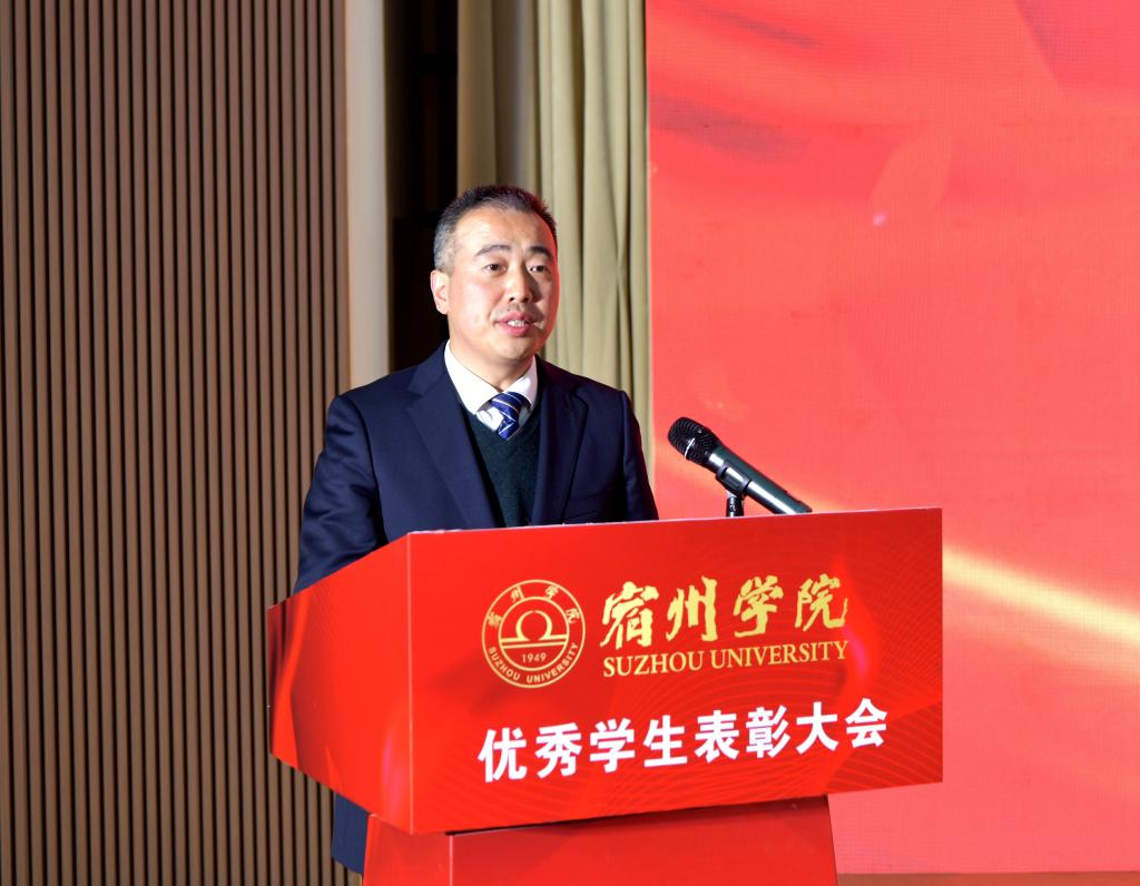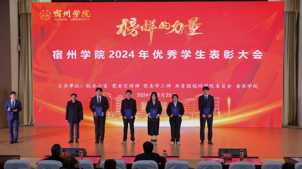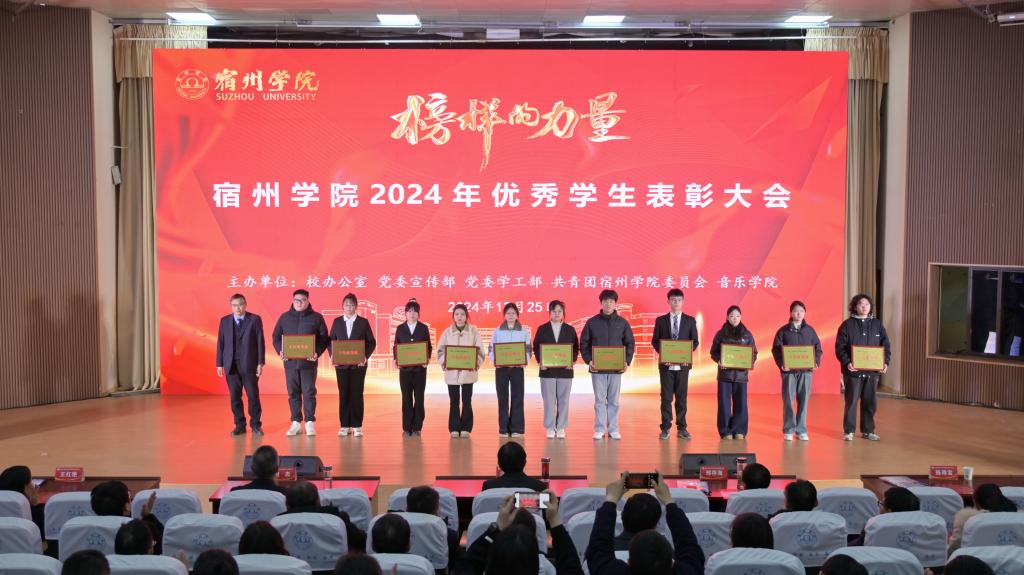 校领导为三好学生标兵、十佳大学生、十佳班集体,暑期“三下乡”社会实践活动优秀实践个人、实践团队及组织单位,安徽省大学生创新大赛(2024)金奖、第十四届“挑战杯”中国大学生创业计划竞赛国家级铜奖,国家励志奖学金、校长奖学金、国家奖学金等受到表彰的优秀个人和集体代表颁发了奖杯和证书。