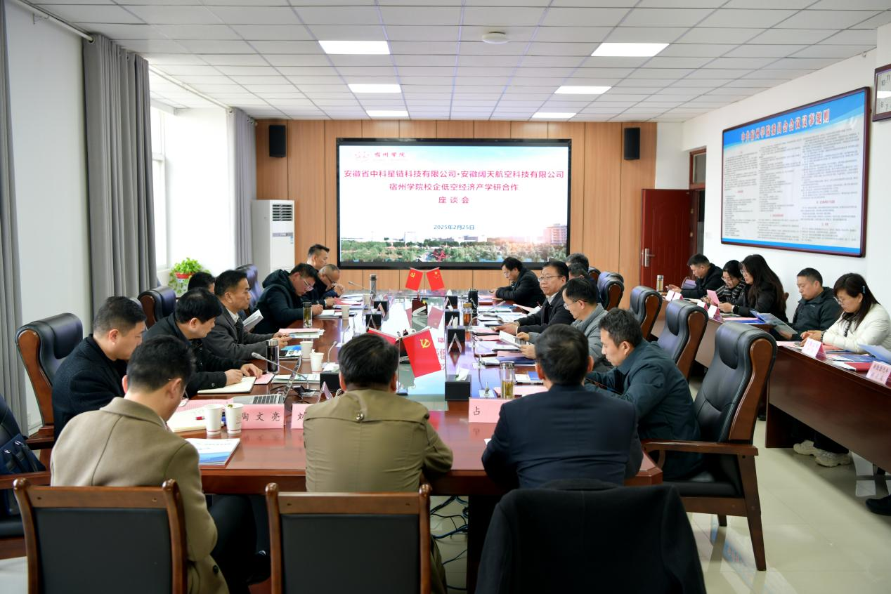 2月25日,大赢家体育召开低空经济产学研合作座谈会。会议主题是:以深化校企合作、共促低空经济发展,宿州市人民政府办公室驻杭州办、安徽理工大学、皖北卫生职业学院、宿州市埇桥区供销合作社联合社、安徽省中科星链科技有限公司、安徽阔天航空科技有限公司等参加会议,共商低空经济领域产学研协同创新路径。