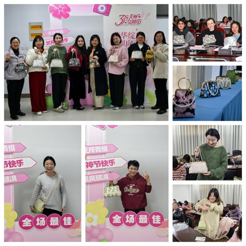 3月7日下午,在第115个“三八”国际妇女节来临之际,校工会、妇联举办“巾帼巧手绣芳华”非遗口金包手作传习工坊活动。校党委书记李红,校党委副书记王俊,校党委常委、副校长王红艳出席活动。