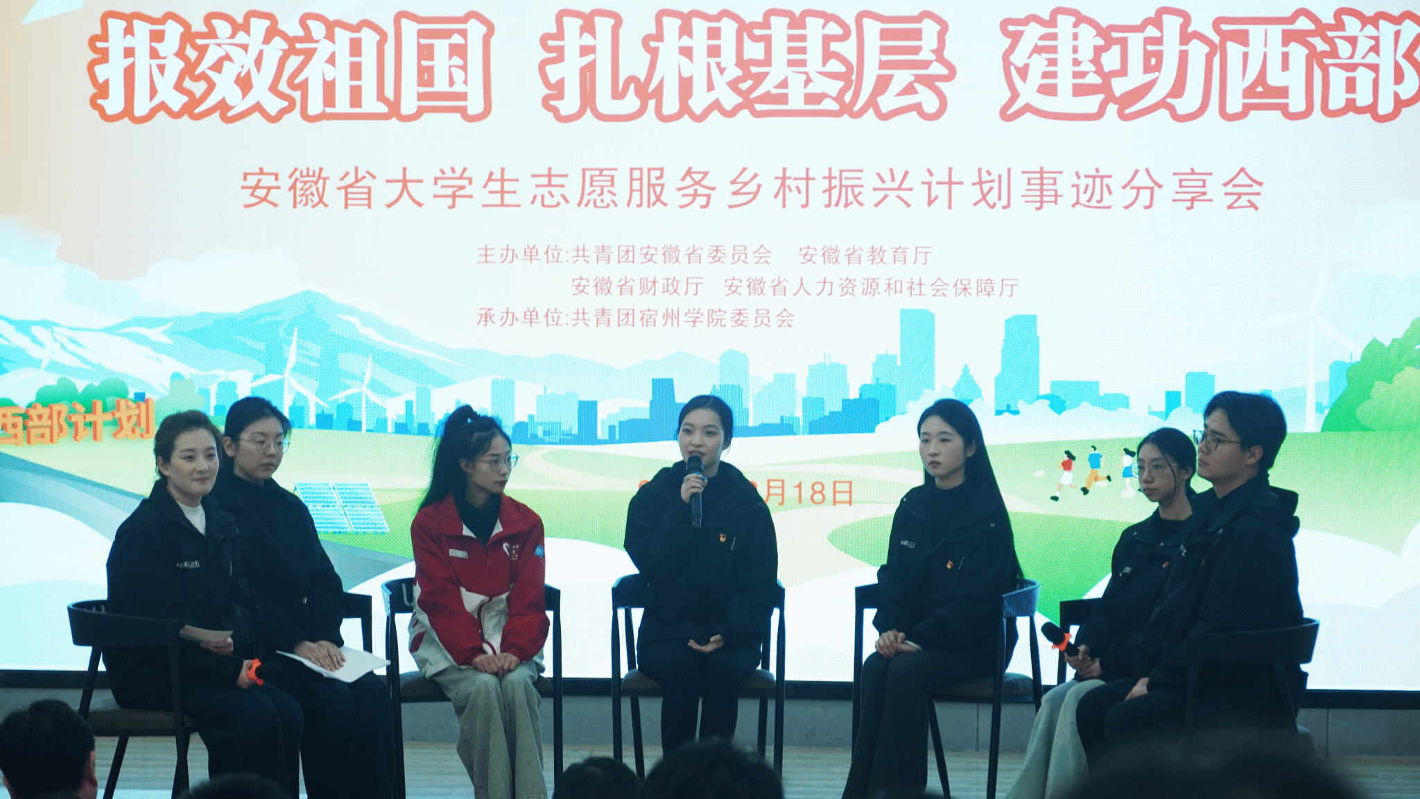3月18日下午,2025年“报效祖国 扎根基层 建功西部”安徽省大学生志愿服务乡村振兴计划事迹分享会在大赢家体育举办。活动由共青团安徽省委员会、安徽省教育厅、安徽省财政厅、安徽省人力资源和社会保障厅主办,大赢家体育承办。大赢家体育党委副书记王俊、团省委学校部部长邹永生等出席活动,安徽省乡村振兴计划志愿者宣讲团成员及师生代表共计300余人参加活动。