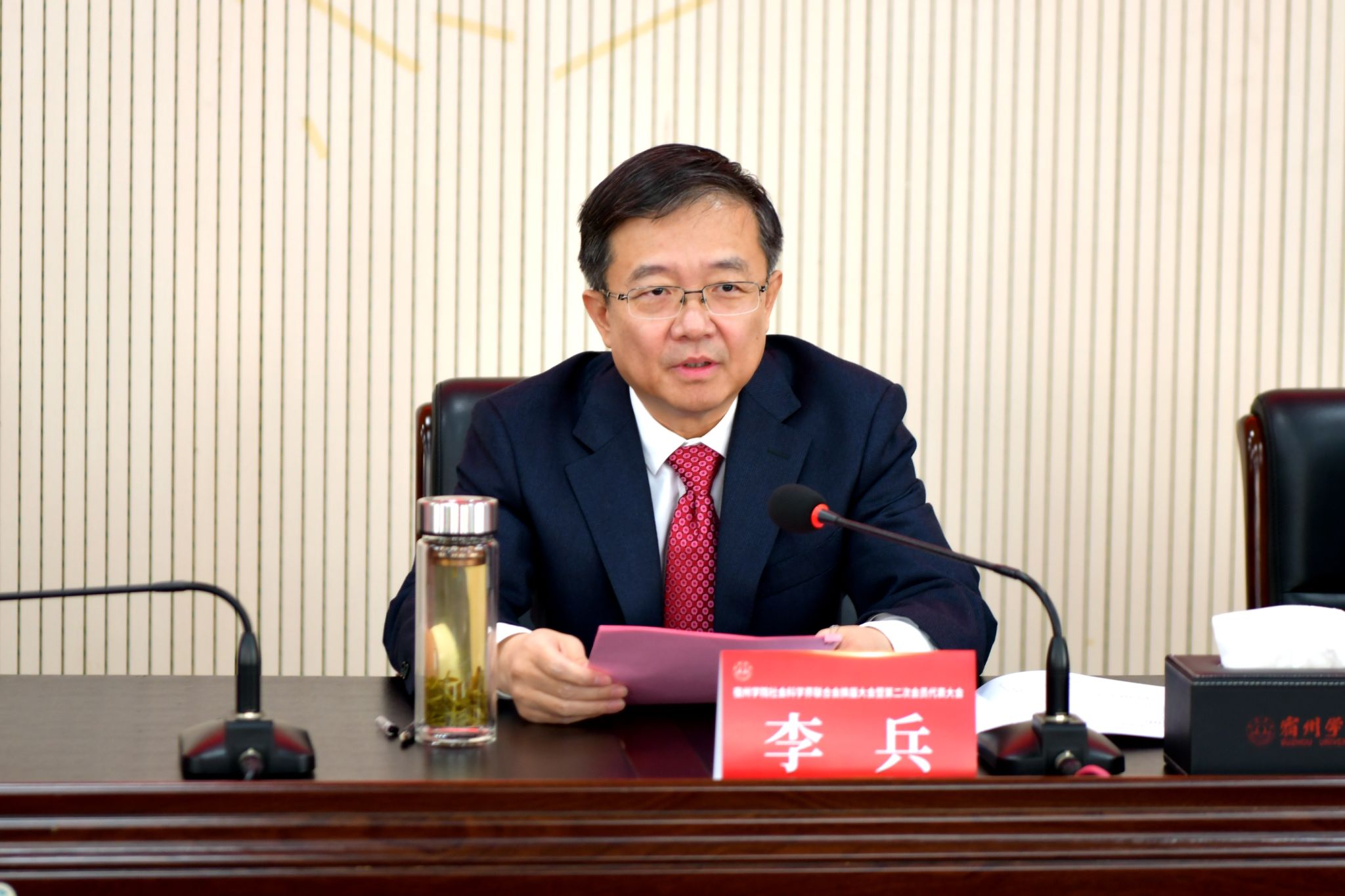 李兵代表省社科联,对大会的召开和新当选的校社科联领导班子表示热烈祝贺,充分肯定了学校在人才培养、学术研究、社会服务等方面取得的成绩,以及为促进区域经济社会高质量发展作出的突出贡献。他强调,新时期社科联工作要突出思想引领,进一步深化理论武装,坚持马克思主义基本原理指导地位不动摇,把学习研究、阐释宣传习近平新时代中国特色社会主义思想作为首要政治任务和重大政治责任;要突出围绕大局,进一步提高服务质量,紧扣主责主业,紧扣安徽实践,紧扣特色优势,继续发挥学校特色办学优势,创新教育模式,发挥好平台的引领作用,努力对美好安徽建设中的重大理论和实践问题拿出“金点子”,开出“好方子”;要突出“联”的职能,进一步构建优质平台,促进“内引”“外联”和融合,发挥“联”的优势,通过“联”的活动、“合”的工作,搭建起全校社科工作者施展才华、发挥作用的有效平台和温馨之家。